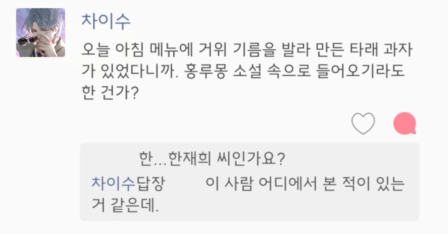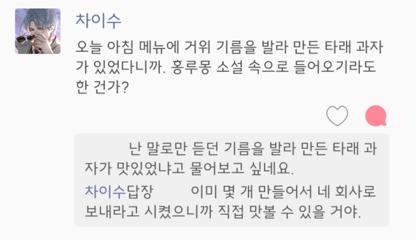 ↪↪피앙세, 뭘 먹고 싶지? 목서청로, 아니면 설탕을 넣어 찐 치즈? 당장 준비해주지.